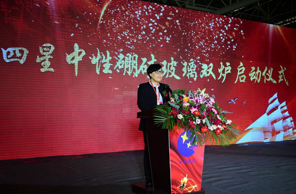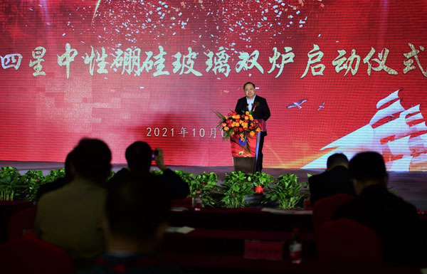 5號(hào)窯爐采用的是行業(yè)領(lǐng)先的“全電熔維洛法”熔化拉管技術(shù),實(shí)現(xiàn)了從配料到投料、從熔化到拉管、從檢測(cè)到包裝入庫(kù)的全過(guò)程智能化生產(chǎn)。基于四星公司十余年中性硼硅玻璃生產(chǎn)經(jīng)驗(yàn)的提煉與升華,5號(hào)中性硼硅玻璃窯爐集合了第一、二、三、四座窯爐的精華,規(guī)避了原有窯爐的不足,其熔化質(zhì)量較前四座窯爐更具優(yōu)勢(shì),玻管顏色比以前也會(huì)有很大的提升與改進(jìn),完全能夠滿(mǎn)足高端客戶(hù)的特殊需求。并且,能夠多元化生產(chǎn)各品規(guī)、多用途的中性硼硅玻璃制品。 作為中國(guó)醫(yī)藥包裝協(xié)會(huì)推薦認(rèn)可的國(guó)內(nèi)藥用玻璃包裝制造領(lǐng)域領(lǐng)軍企業(yè),四星公司也是擁有完全知識(shí)產(chǎn)權(quán),全部采用自有技術(shù),能規(guī)模化批量生產(chǎn)藥用中性硼硅玻璃的高新技術(shù)企業(yè)。如今,5號(hào)窯爐的成功點(diǎn)火對(duì)于四星公司意義重大,意味著四星公司在醫(yī)藥包裝行業(yè)又邁上了一個(gè)新的臺(tái)階。 本次項(xiàng)目啟動(dòng)由滄州高新區(qū)黨工委書(shū)記、管委會(huì)主任夏軍主持并講話(huà)。 河北省工業(yè)和信息化廳黨組書(shū)記、廳長(zhǎng)龔曉峰,國(guó)家工信部原材料司建材處石琳,國(guó)家食品藥品監(jiān)督管理局原副局長(zhǎng)張文周,中國(guó)醫(yī)藥包裝協(xié)會(huì)會(huì)長(zhǎng)蔡弘,中國(guó)醫(yī)藥管理協(xié)會(huì)會(huì)長(zhǎng)郭云沛,中國(guó)輕工業(yè)信息中心玻璃技術(shù)信息交流委員會(huì)張守和,中國(guó)生化制藥工業(yè)協(xié)會(huì)常務(wù)副會(huì)長(zhǎng)胡文言,河北省醫(yī)藥協(xié)會(huì)會(huì)長(zhǎng)劉驍悍,滄州市人民政府副市長(zhǎng)尹衛(wèi)江,滄州市工信局局長(zhǎng)時(shí)金青,滄州市發(fā)改委副主任張國(guó)慶,滄州市科技局局長(zhǎng)桑金歌等領(lǐng)導(dǎo)出席,滄州四星玻璃的客戶(hù)代表及企業(yè)員工代表共同參加了本次項(xiàng)目的啟動(dòng)活動(dòng)。河北省工信廳,滄州市人民政府,滄州市高新技術(shù)開(kāi)發(fā)區(qū)政府的領(lǐng)導(dǎo),行業(yè)協(xié)會(huì)領(lǐng)導(dǎo),四星玻璃董事長(zhǎng)為點(diǎn)火儀式致辭。